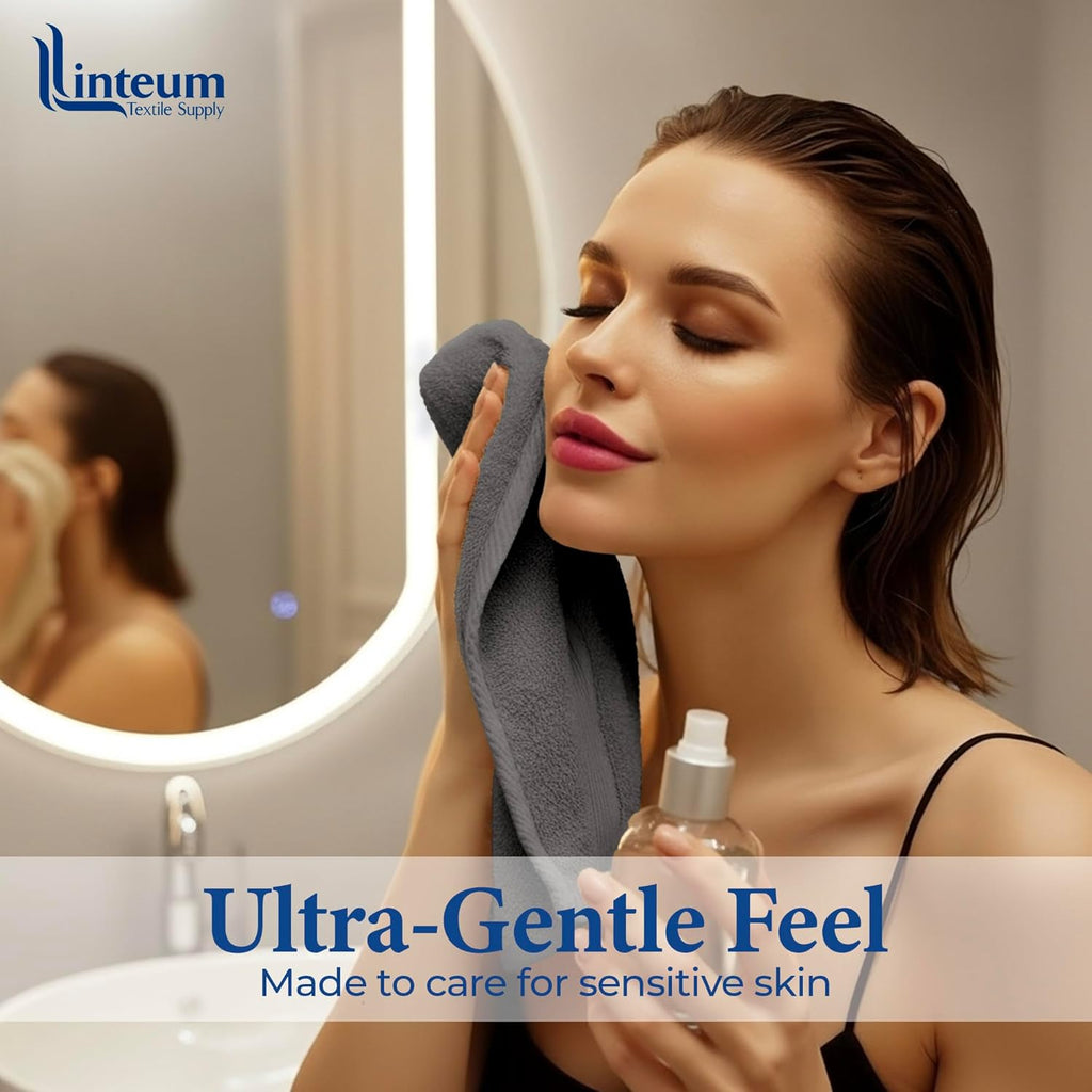 Linteum Textile Washcloth 100% Soft Cotton Zero Twist Premium Washcloths Face Towel 13x13 Inch